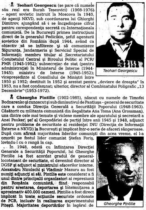 Fabrica date si acte sa condamne ROMANIA si poporul roman pentru CRIMELE EVREILOR impotriva romanilor in perioada 1944-1964, la care a participat si parinti lui VLADIMIR TISMANEANU, respectiv LEONTE TISMANEANU si HERMINA MARCUSHON